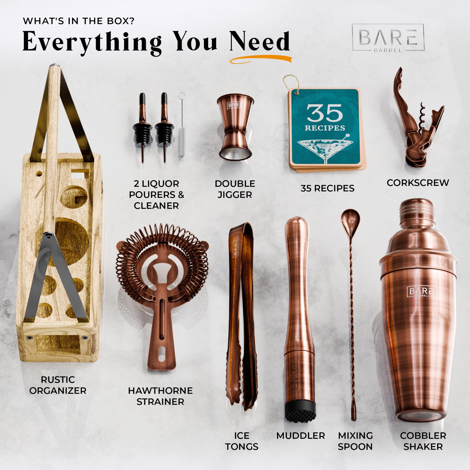 Thanks to Bare Barrel's 12-piece bar sets for the home, you get a headstart on your alcohol mixing journey. Our cocktail set includes all bar cart essentials for making drinks for your guests! - A GIFT SET ANYBODY WOULD LOVE