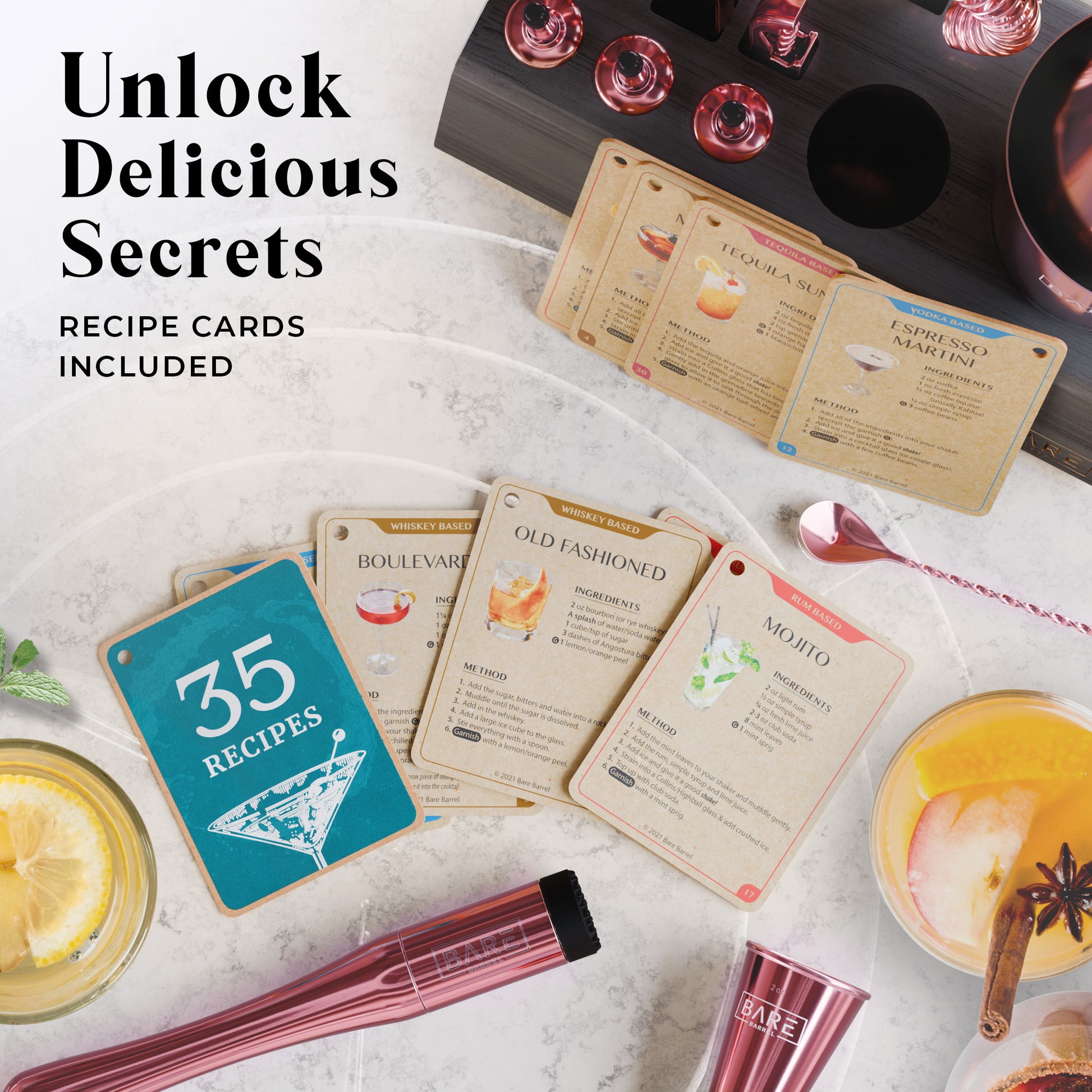 Thinking of a cool present for the aspiring mixologist in your life? With the design and functionality of our bartending kit, your friends and family would certainly enjoy using and showcasing your cocktail gift set. - 35 RECIPE CARDS FOR A FUN MIXING EXPERIENCE