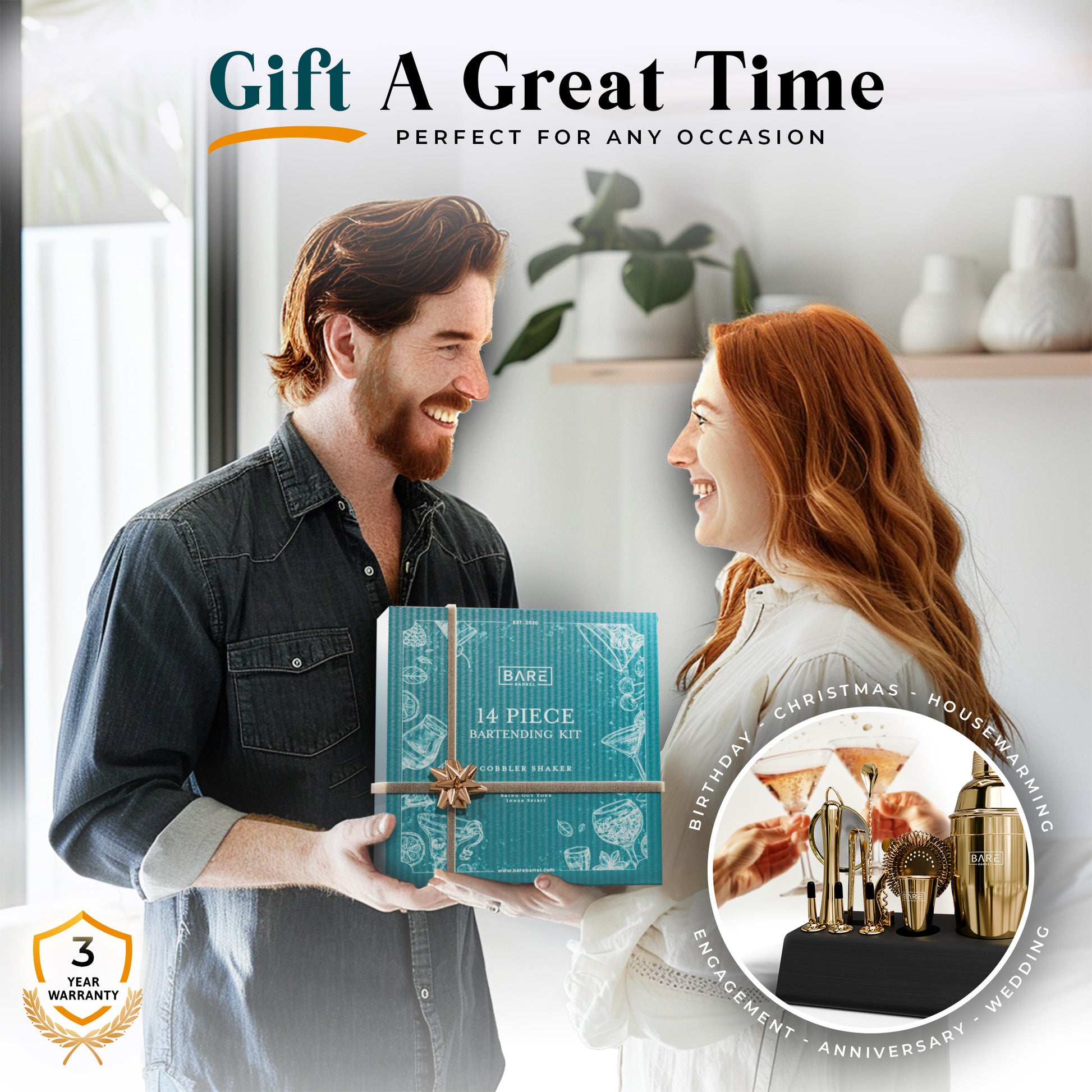 Makes for the perfect couples cocktail kit gift set for men & women, whether an amateur starter mixologist or a pro barman. Treat your boyfriend, girlfriend, husband, wife, fiancé, father, mother or work colleague.