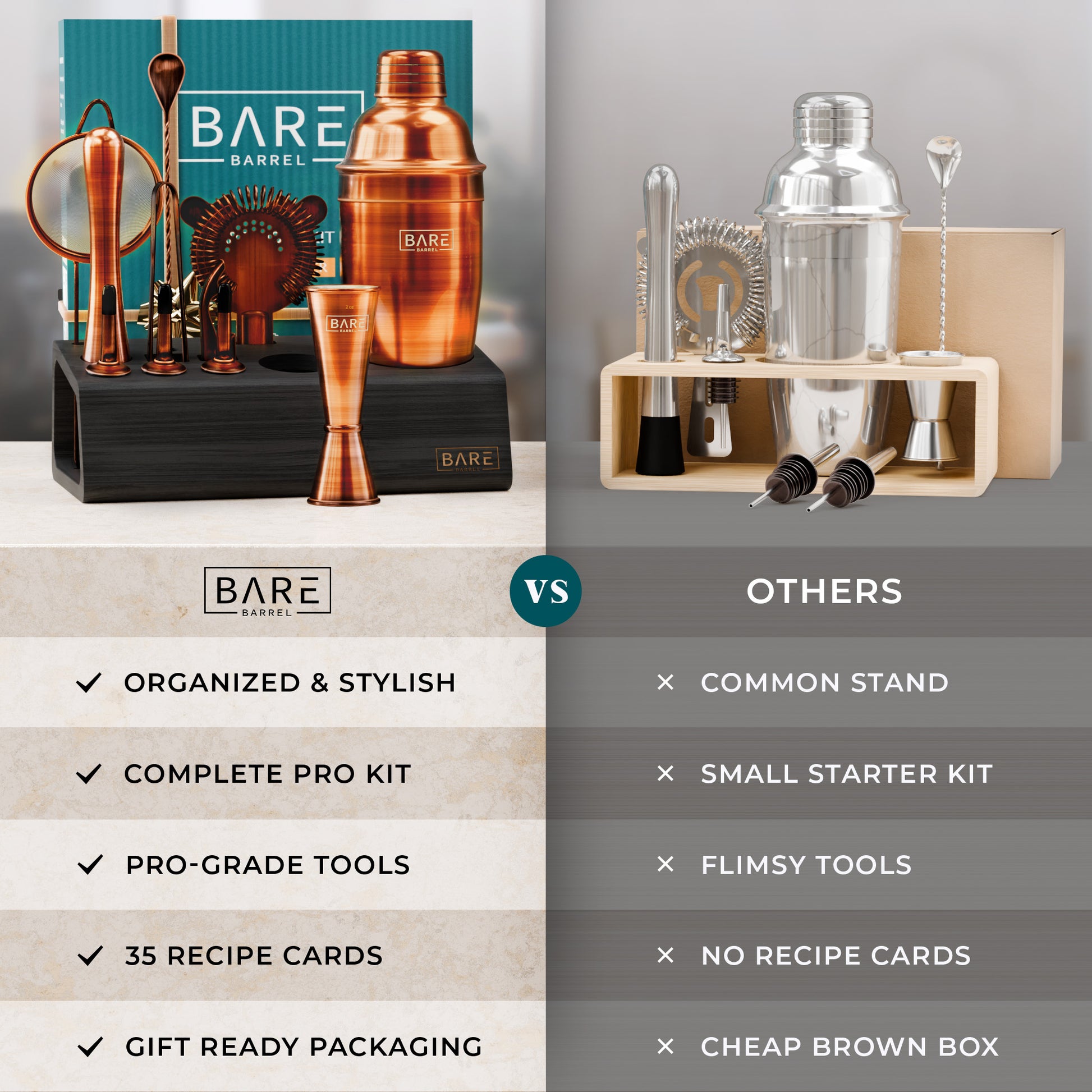 Thanks to Bare Barrel's 14-piece bar sets for the home, you get a headstart on your alcohol mixing journey. Our cocktail set includes all bar cart essentials for making drinks for your guests! - A GIFT SET ANYBODY WOULD LOVE