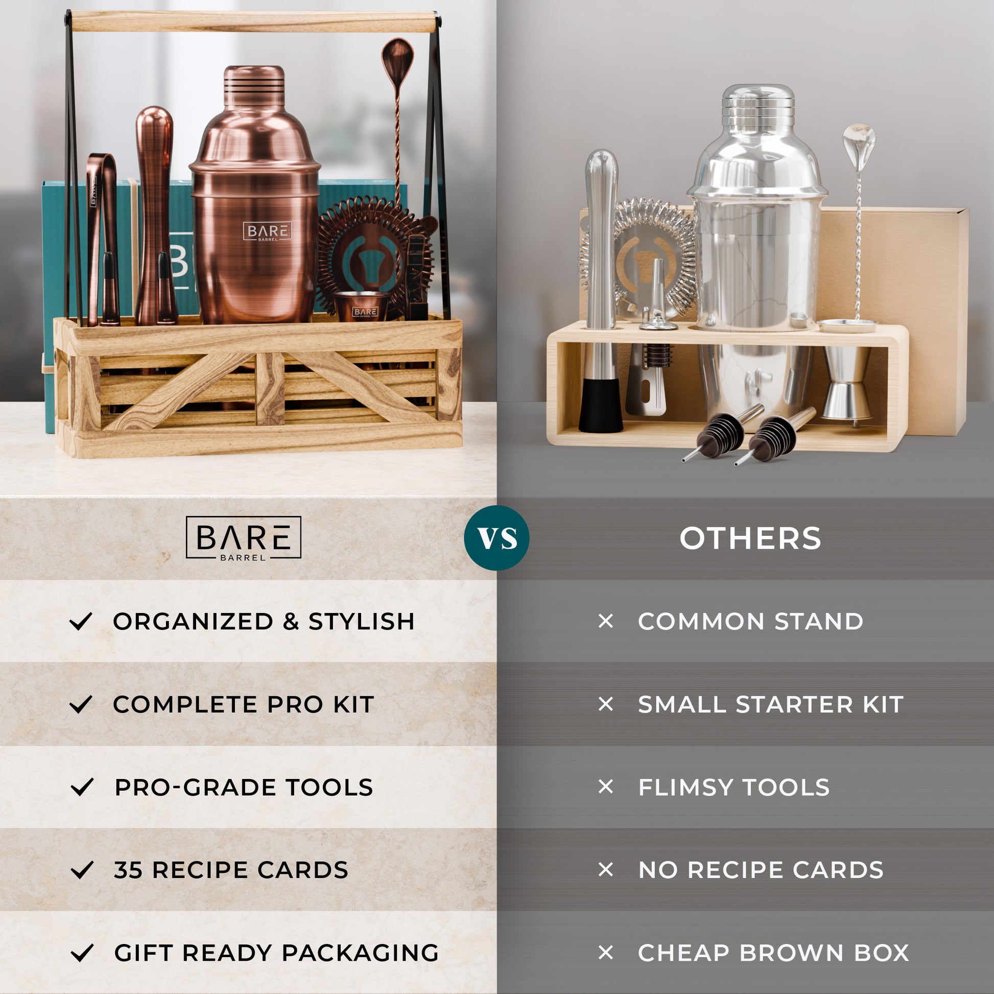 Thanks to Bare Barrel's 12-piece bar sets for the home, you get a headstart on your alcohol mixing journey. Our cocktail set includes all bar cart essentials for making drinks for your guests! - A GIFT SET ANYBODY WOULD LOVE