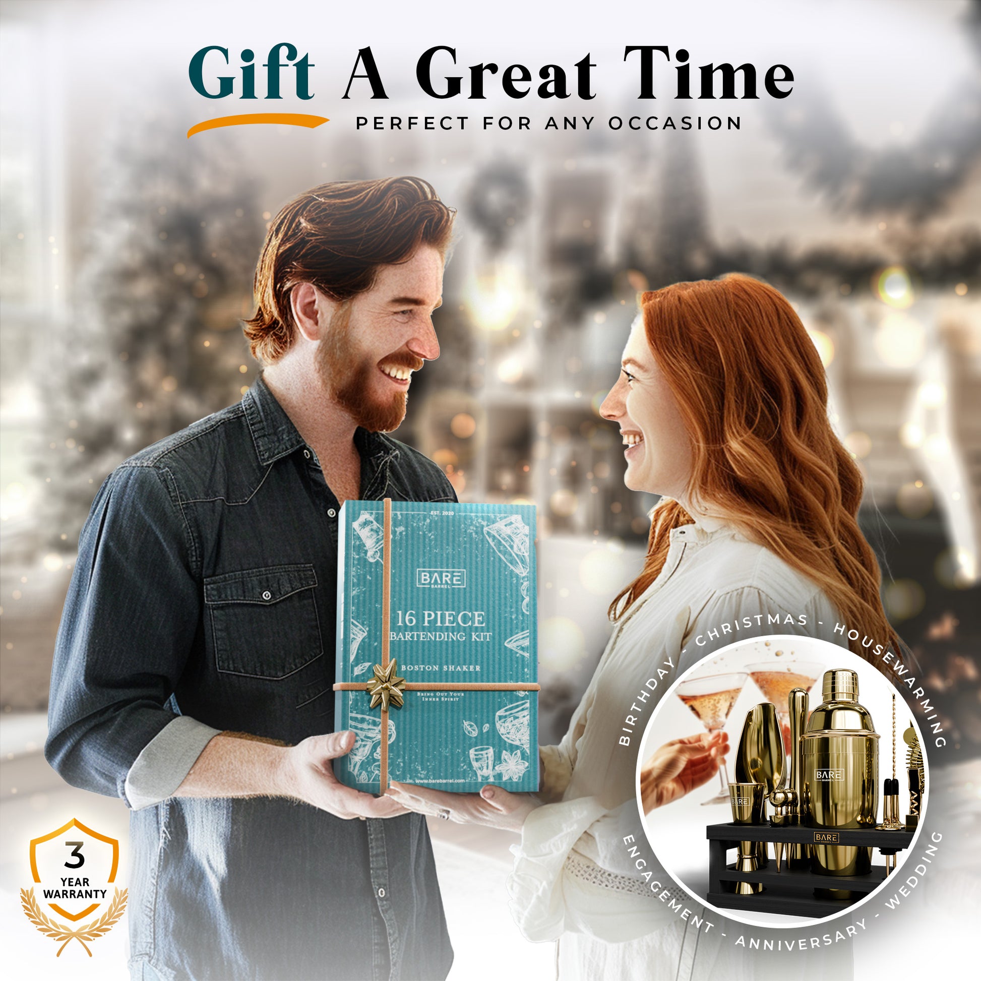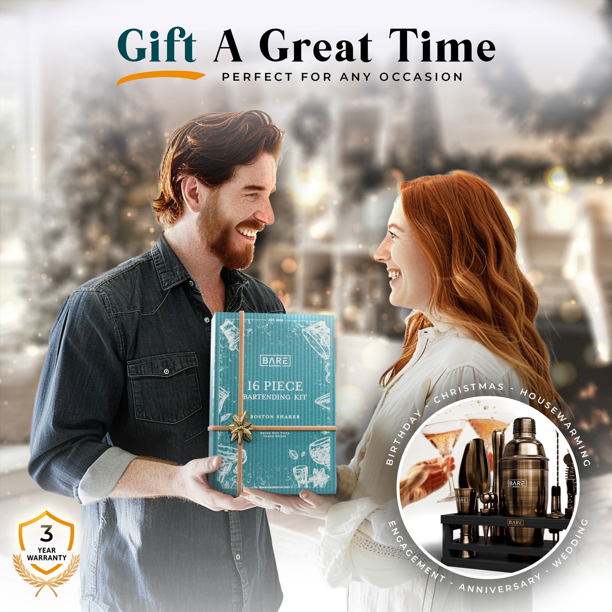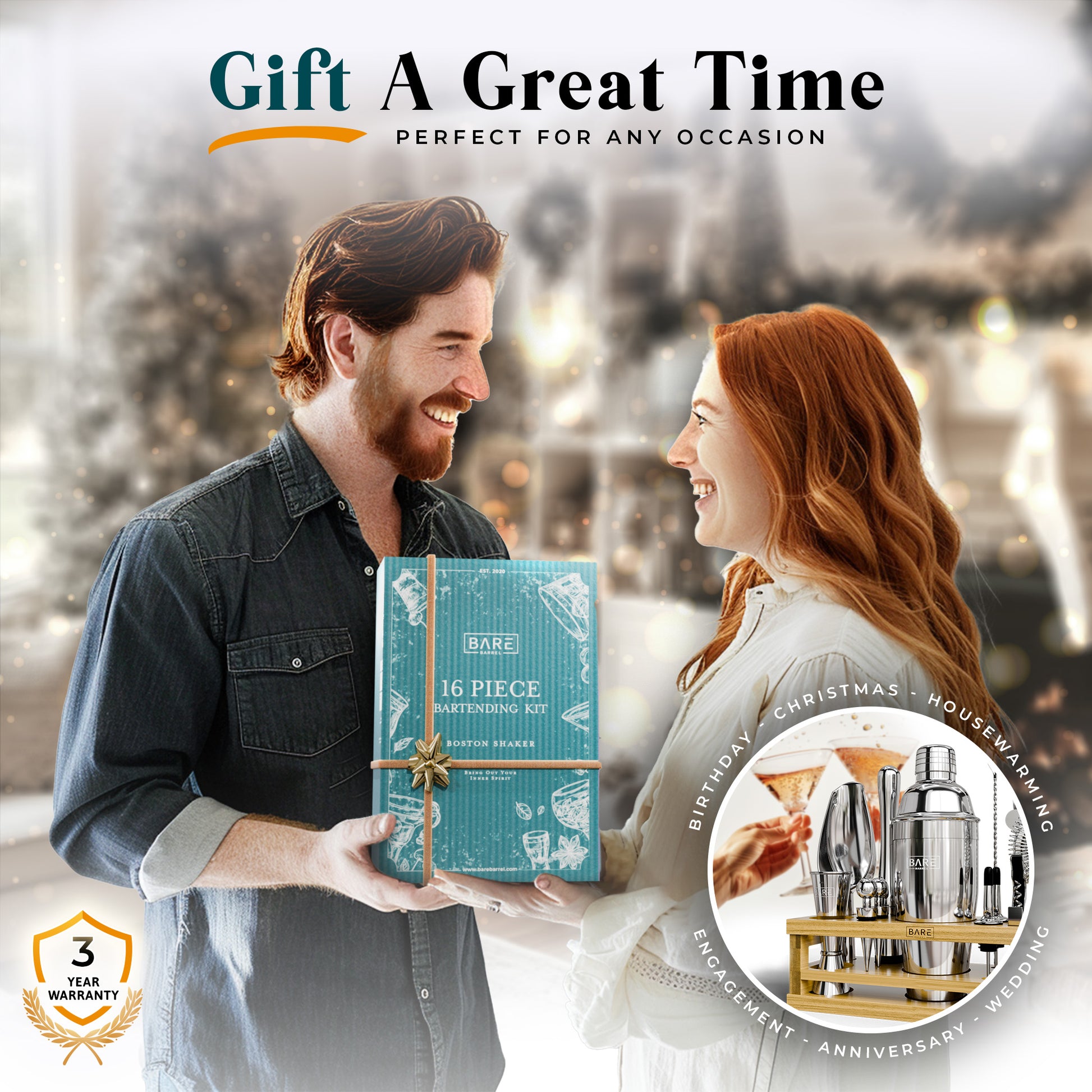 Makes for the perfect couples cocktail kit gift set for men & women, whether an amateur starter mixologist or a pro barman. Treat your boyfriend, girlfriend, husband, wife, fiancé, father, mother or work colleague.