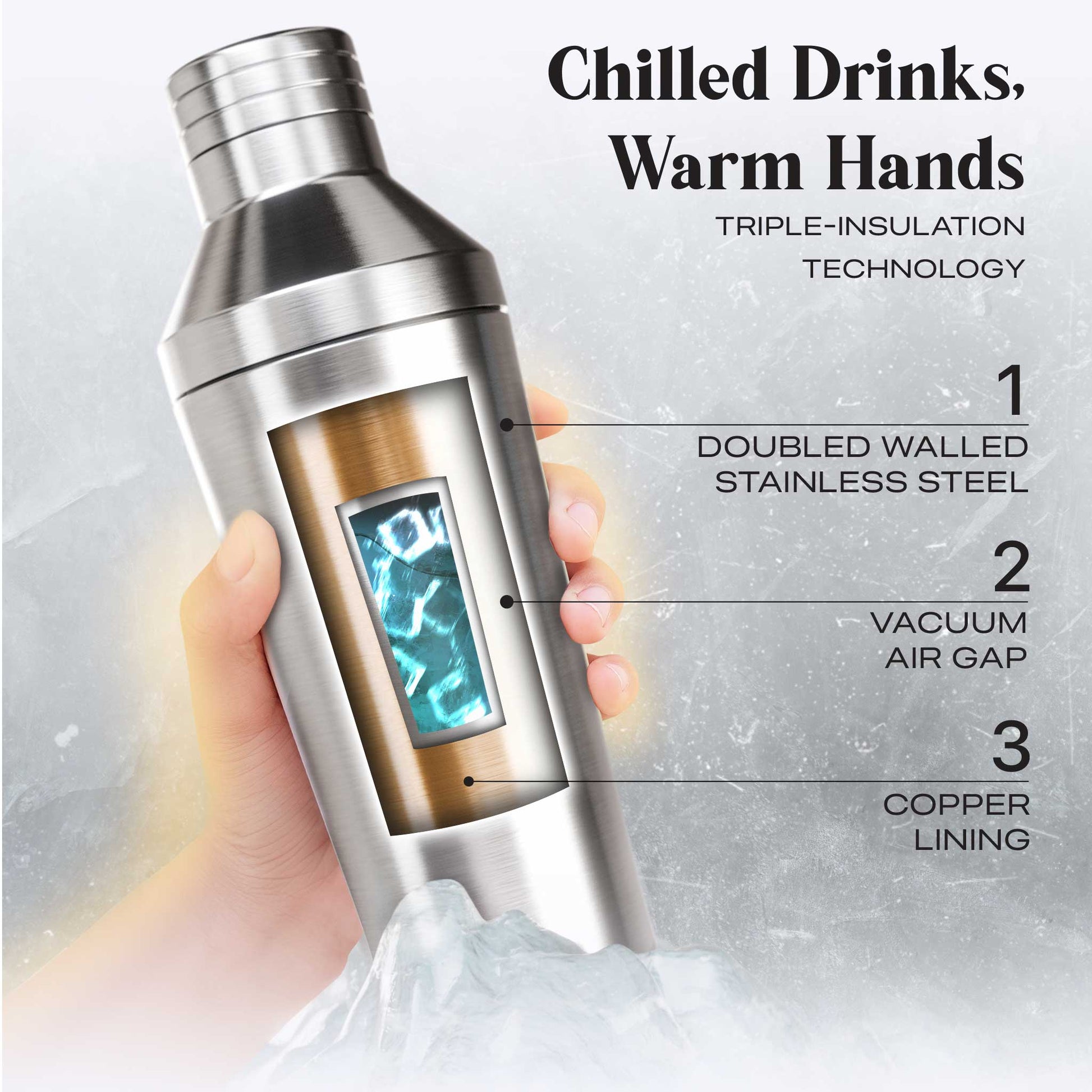 Keeps cocktails colder for longer without condensation - no wet hands, no watered-down drinks. Ideal for beginners to pros who value precision, style & comfort