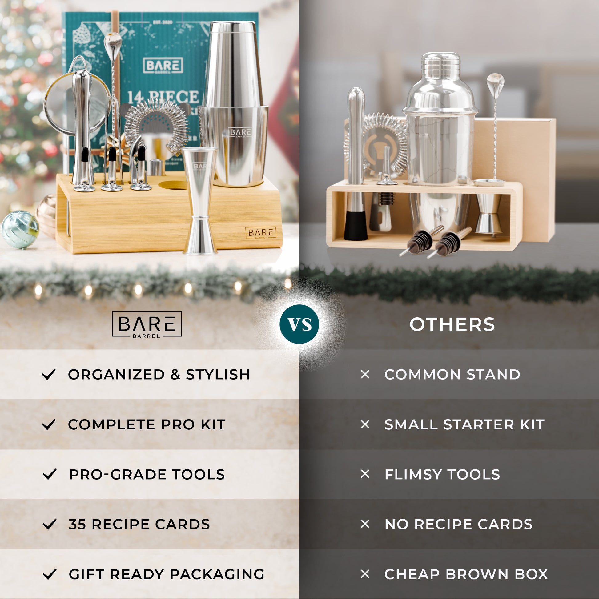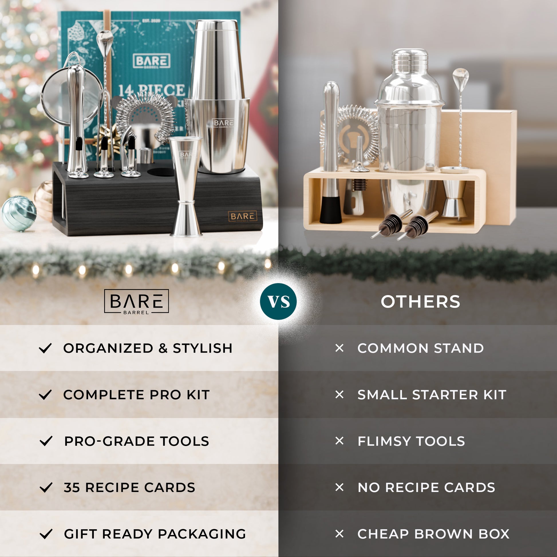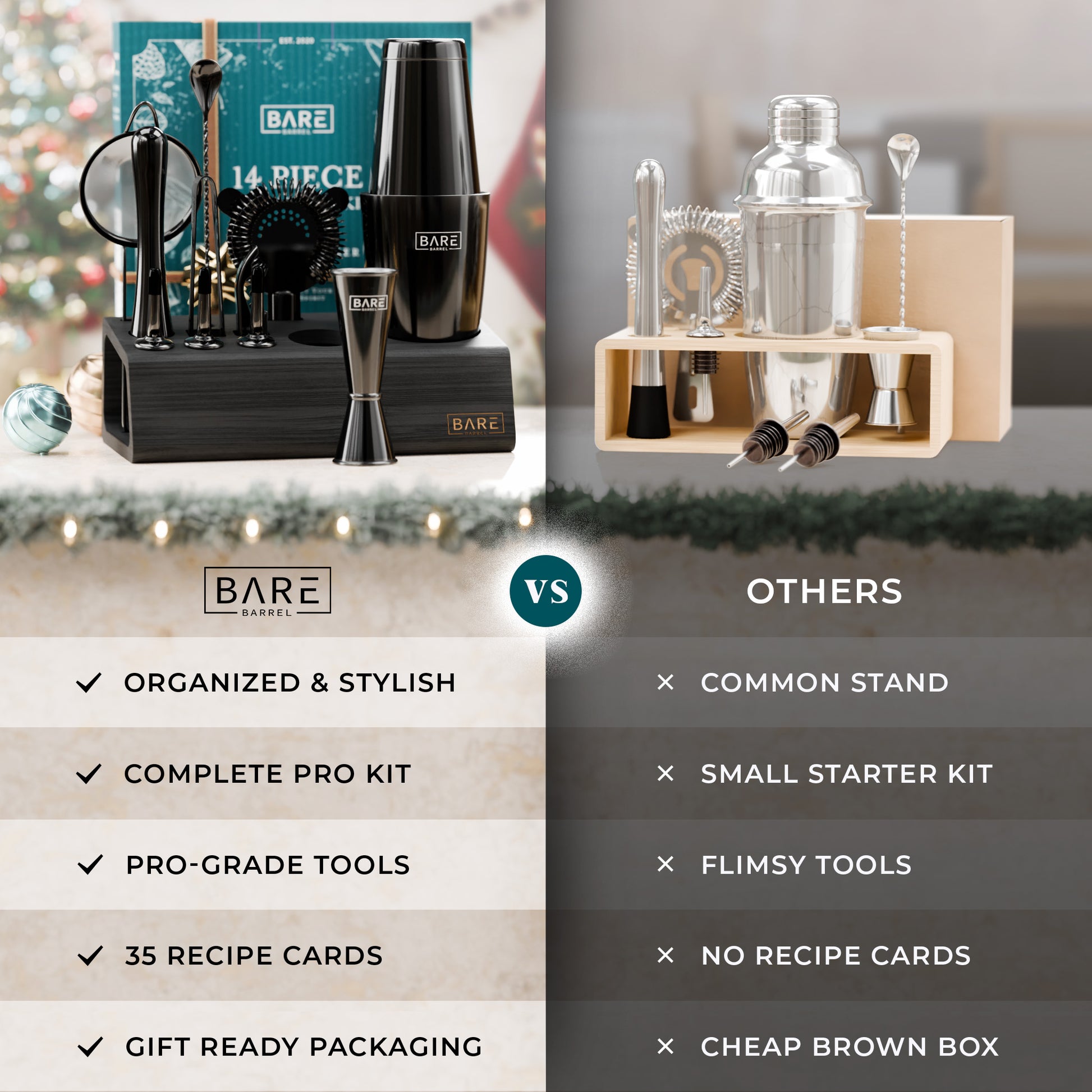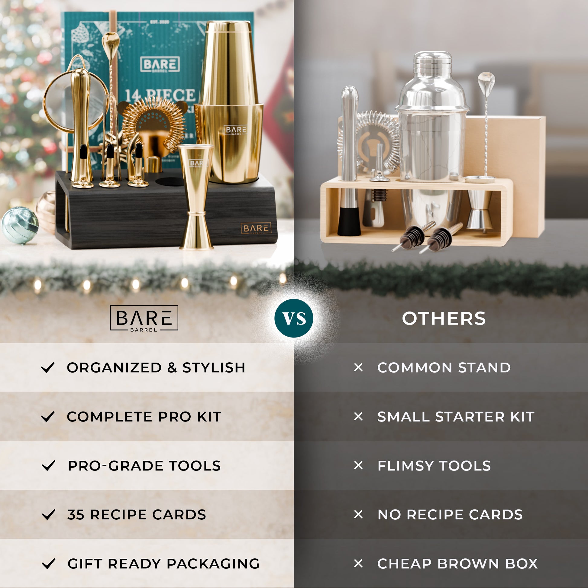 A complete bartending kit cocktail set with all the bar cart essentials equipment you need to shake & mix up delicious adult alcoholic drinks & mocktails.