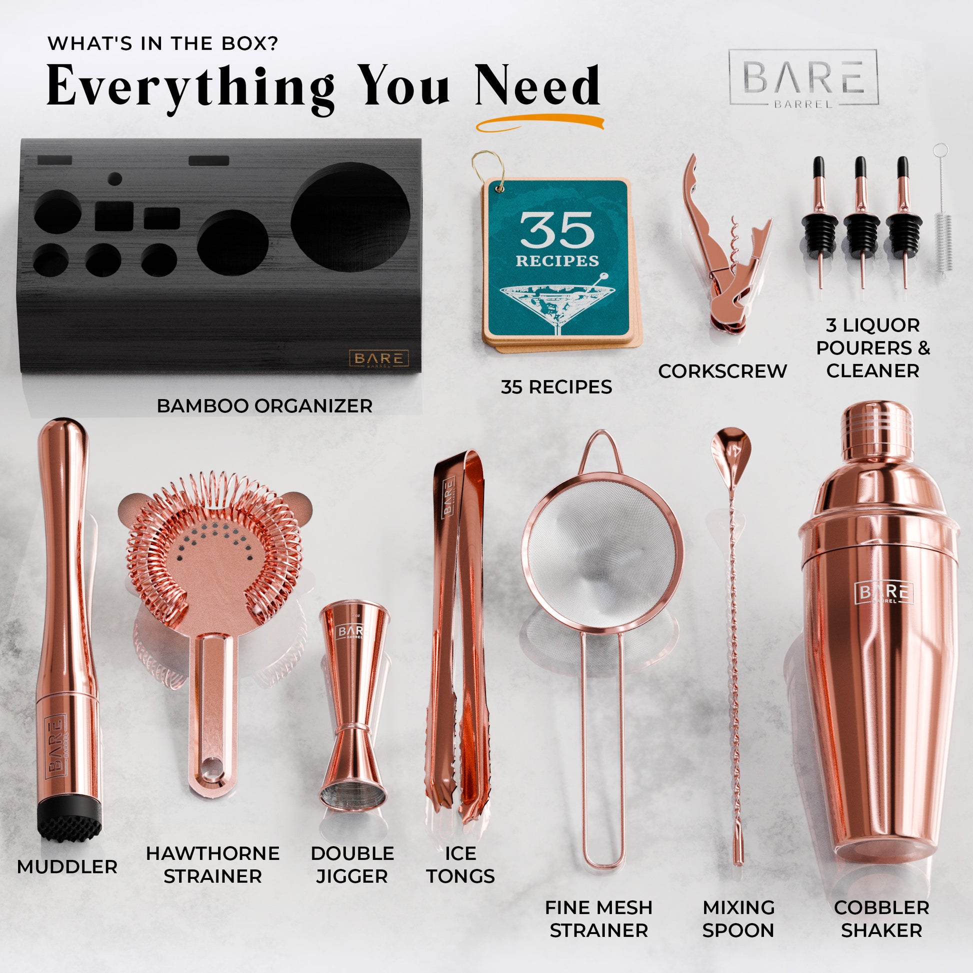 Thanks to Bare Barrel's 14-piece bar sets for the home, you get a headstart on your alcohol mixing journey. Our cocktail set includes all bar cart essentials for making drinks for your guests! - A GIFT SET ANYBODY WOULD LOVE