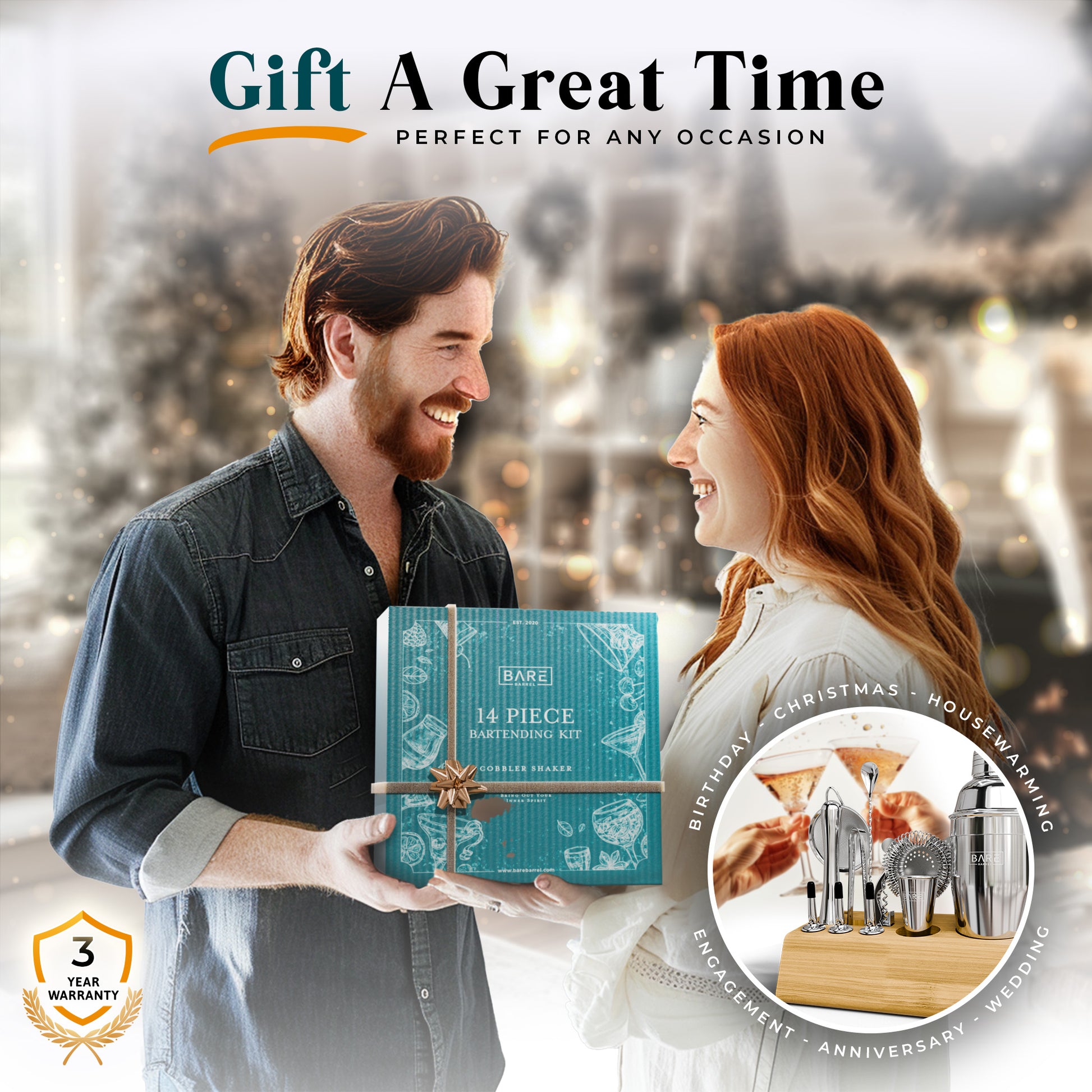 Makes for the perfect couples cocktail kit gift set for men & women, whether an amateur starter mixologist or a pro barman. Treat your boyfriend, girlfriend, husband, wife, fiancé, father, mother or work colleague.